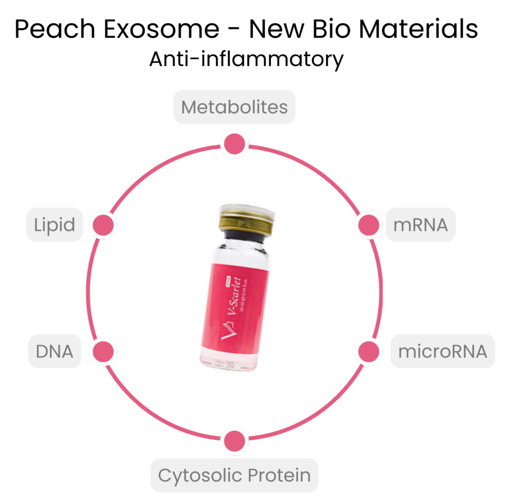V-Scarlet Pink harnesses the regenerative potential of exosomes extracted exclusively from peach leaves, stems, and roots—completely eliminating the allergy risks associated with the fruit flesh.