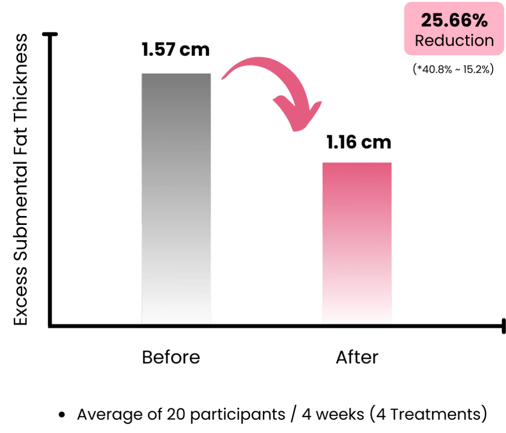 V-Scarlet Pink delivers measurable results without compromising patient comfort. Clinical trials have demonstrated a significant 25.66% reduction in submental fat thickness after a standard 4-week protocol. Unlike traditional lipolytics that cause burning sensations, this formula ensures a virtually painless experience with no swelling, allowing patients to return to their daily activities immediately after treatment.