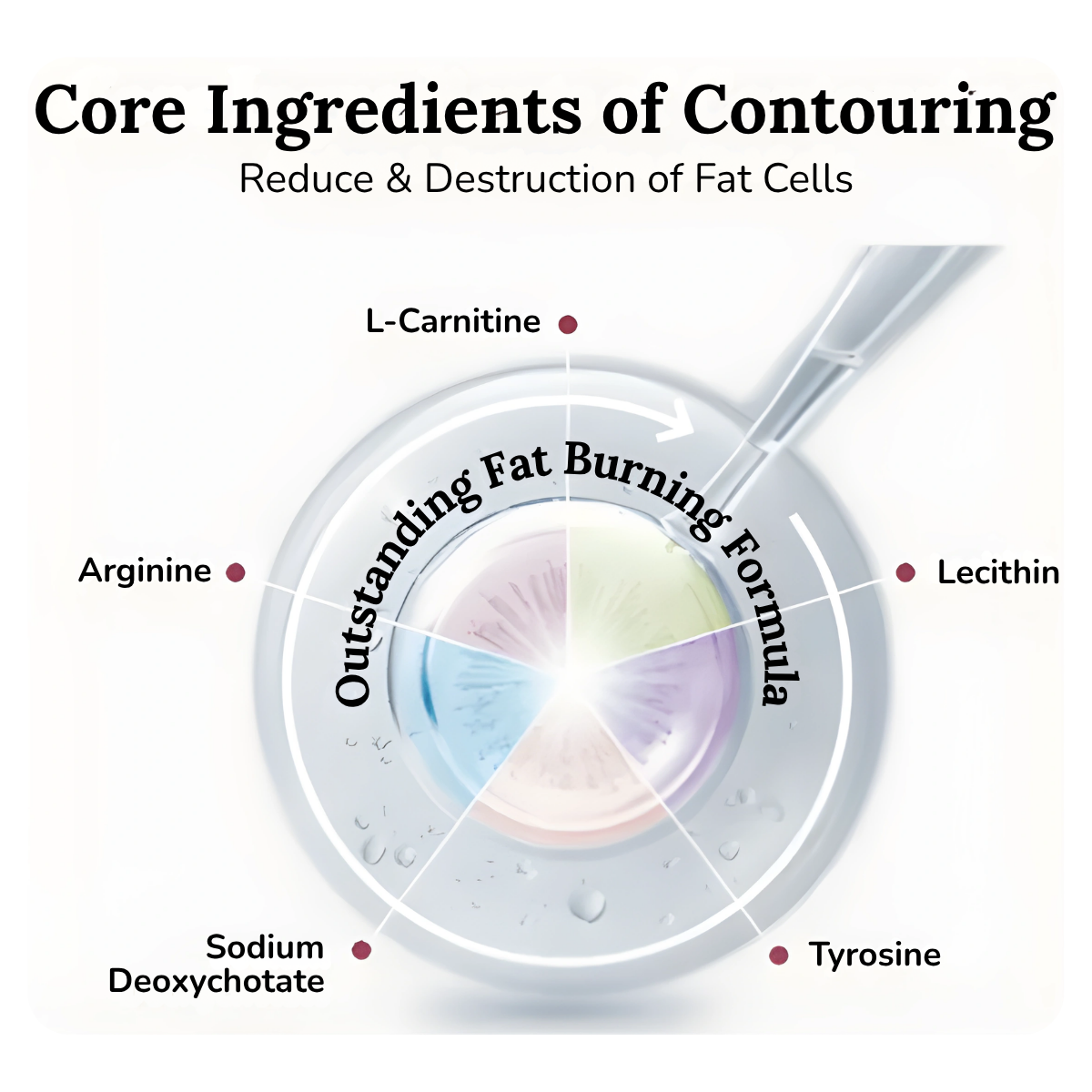 The formula is engineered with a powerful “Contour Complex” utilizing Sodium Deoxycholate to physically disrupt adipocyte membranes and L-Carnitine to accelerate the metabolic burning of released fats. To maximize efficiency and safety, it incorporates circulation-boosting agents such as Arginine and Aesculus Hippocastanum Extract. These ingredients improve blood flow to rapidly eliminate dissolved fat residues and significantly reduce the risk of edema often associated with fat-dissolving procedures.